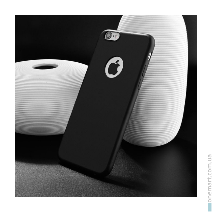 Захисний чохол з отвором під лого для iPhone 6 Plus/6S Plus (чорний, силікон)